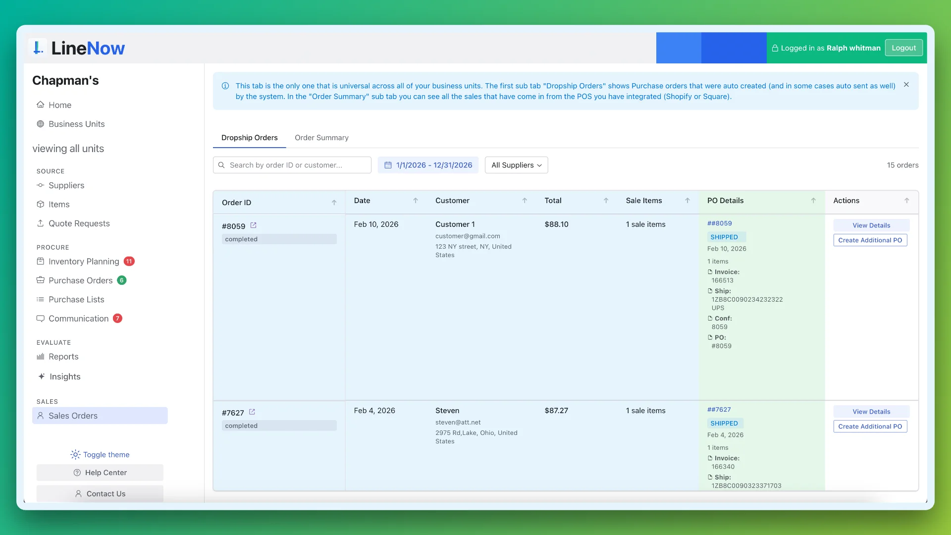 - Build POs directly from inventory