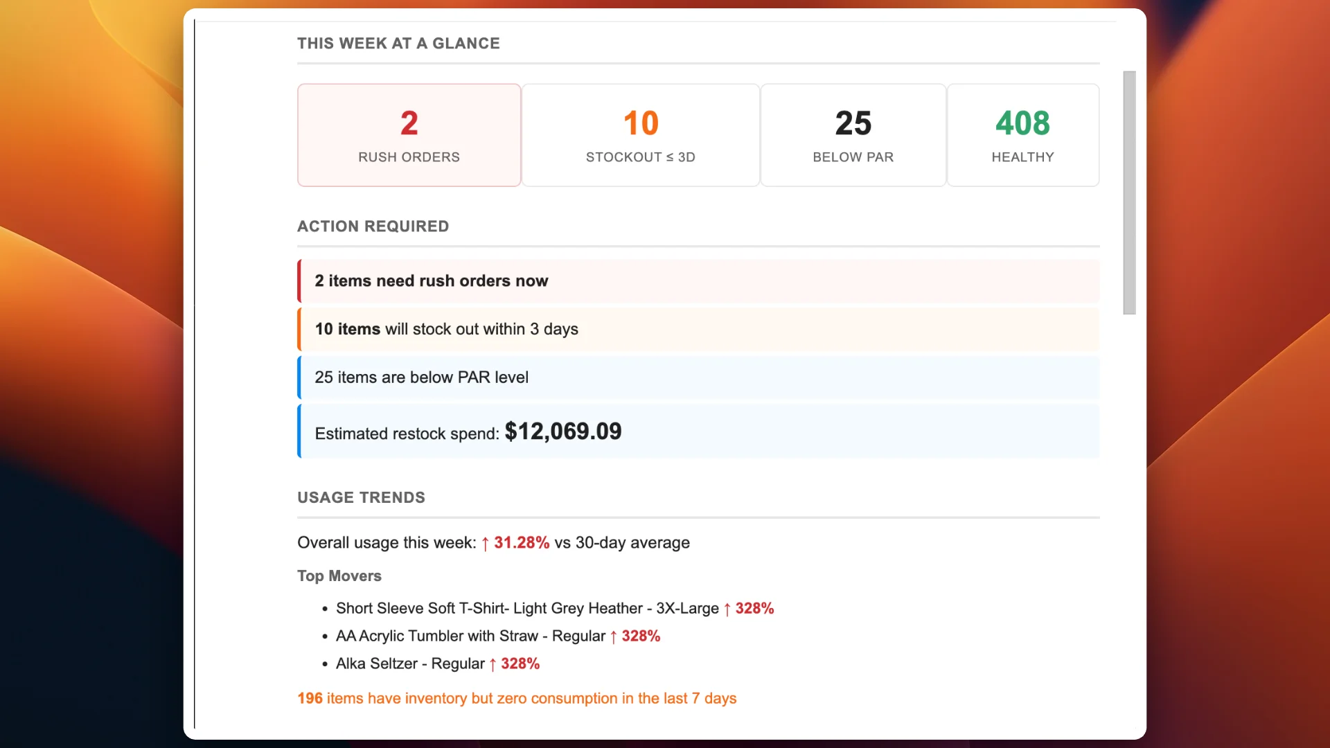 I have saved thousands of dollars a month both on my own time, and on optimizing our ordering strategy. It's such a relief to be able to know you're doing the right thing, and incredibly quickly.